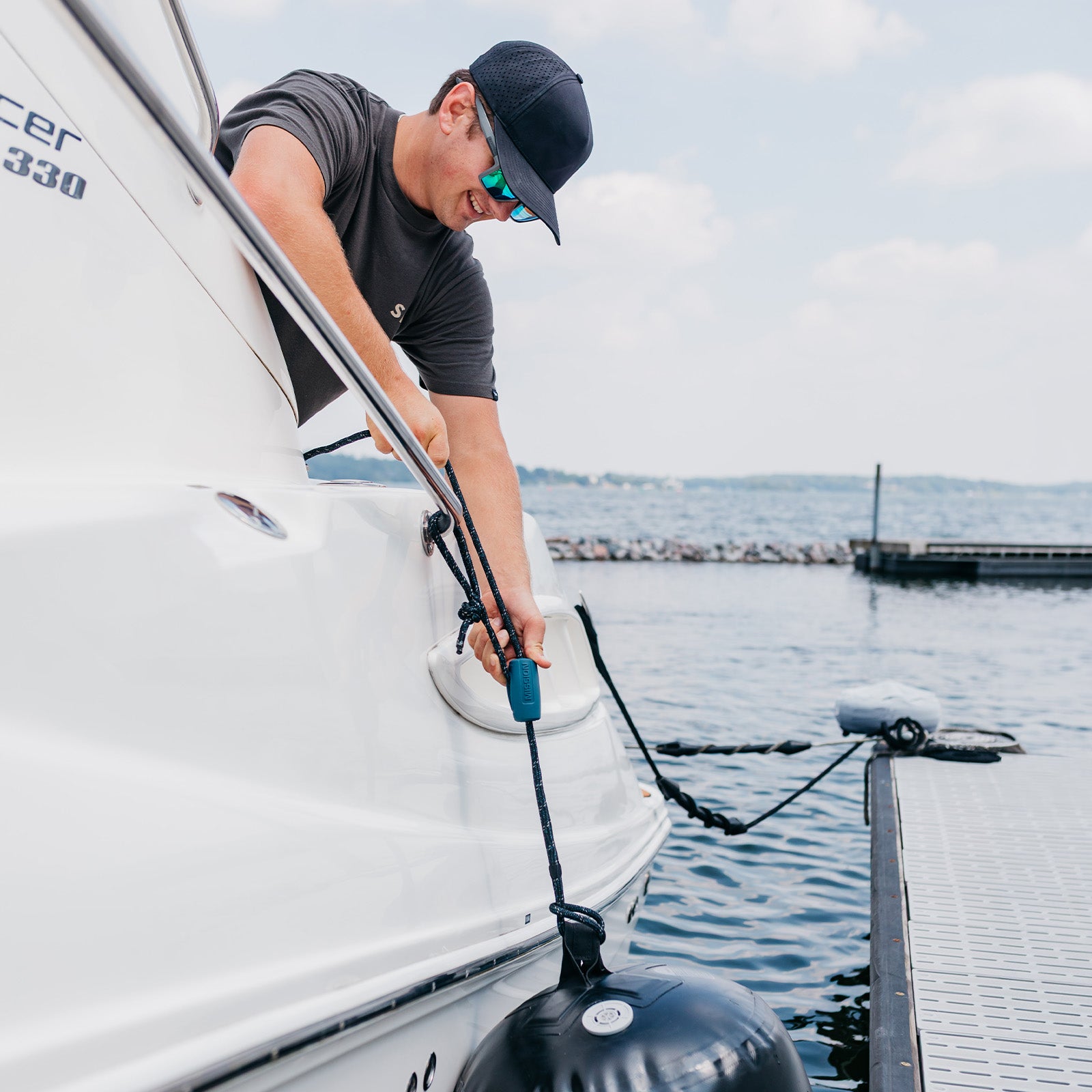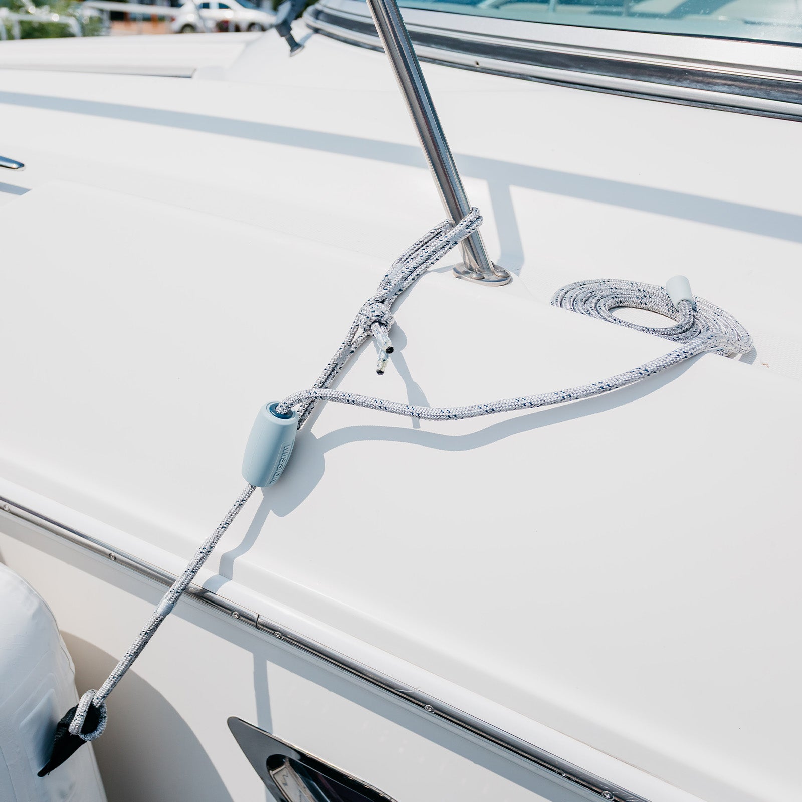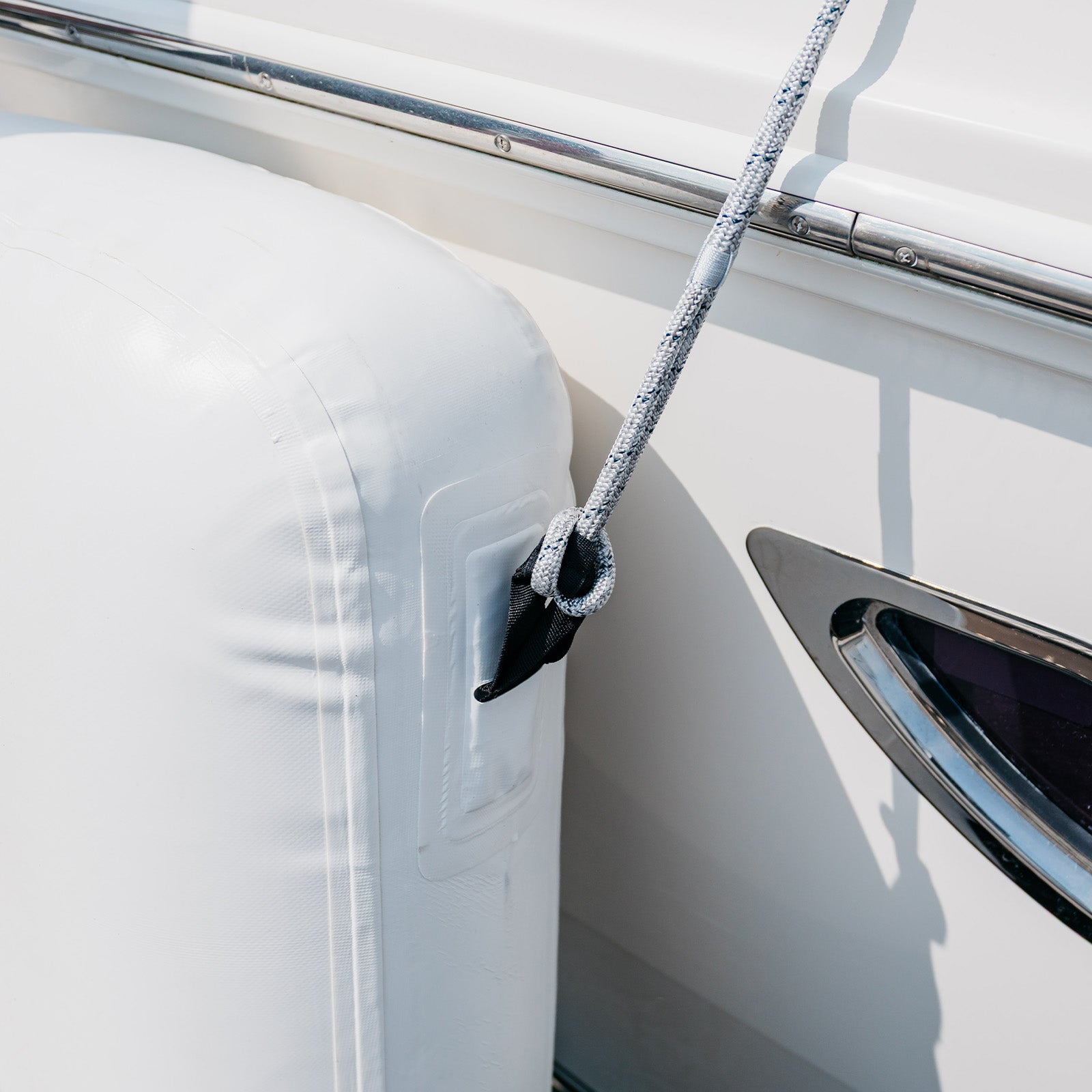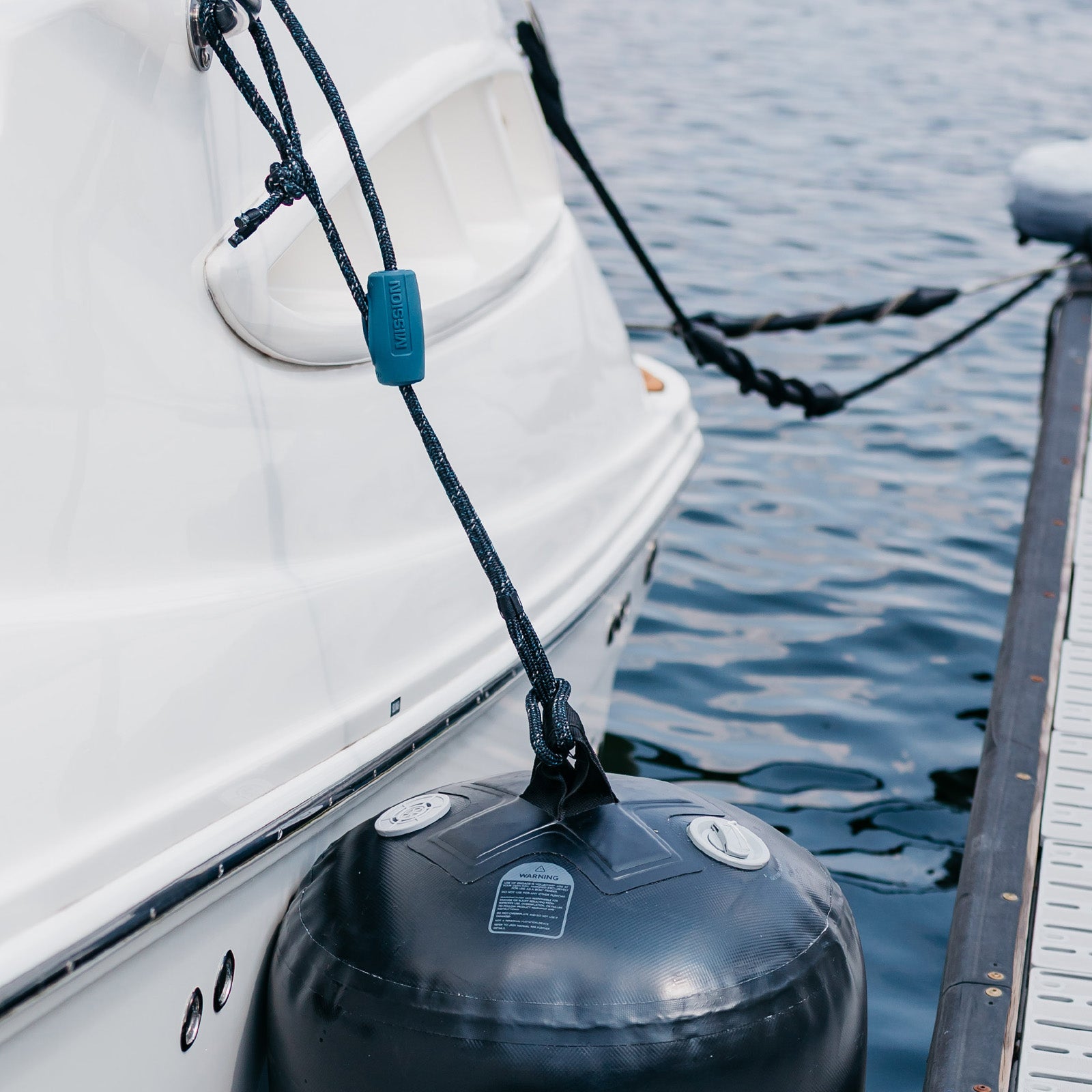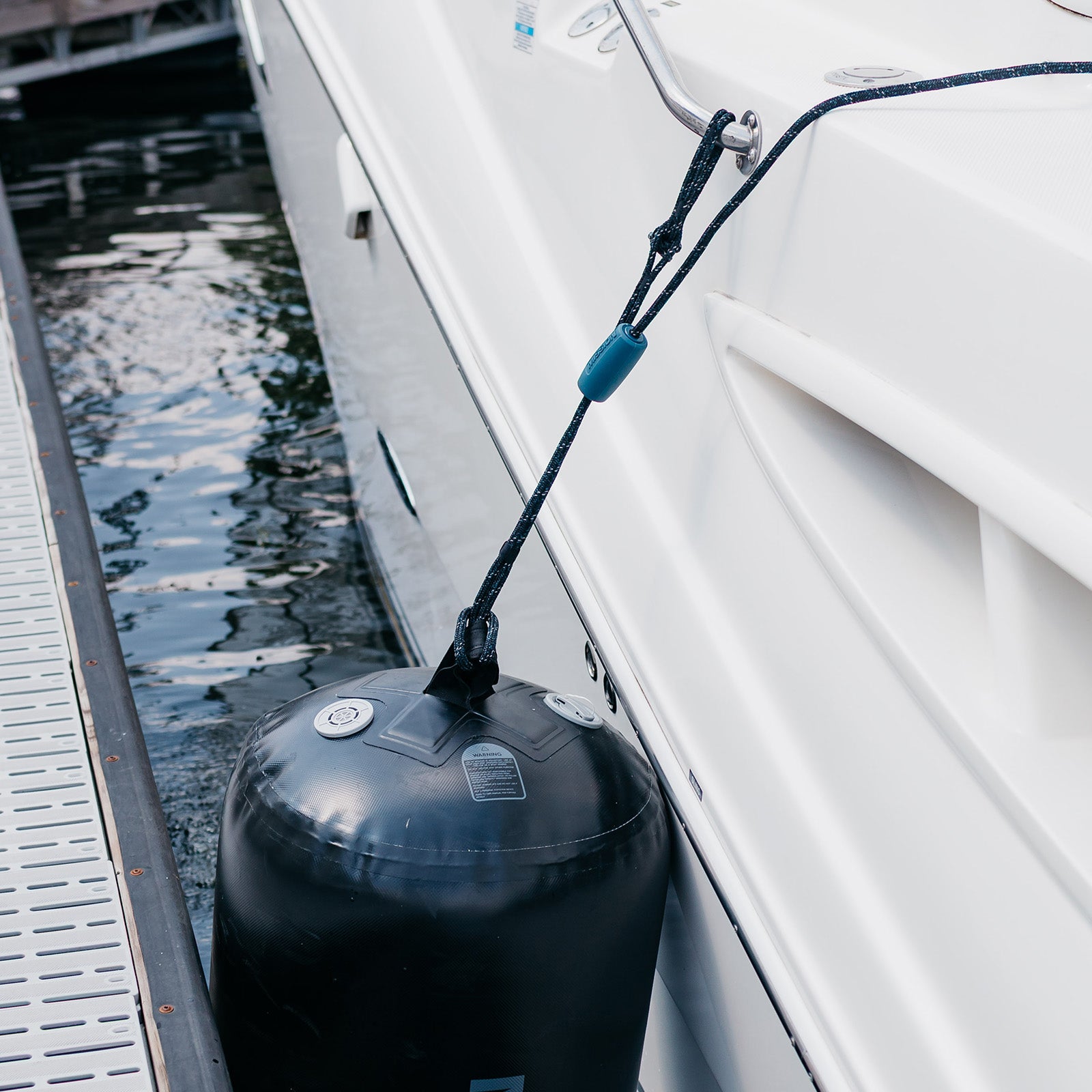 Quick, reliable fender adjustment—without knots. The DREADKNOT Fender Line uses our secure Slide-Lock system to make height adjustment fast and effortless. Just fasten the soft shackle to any rail, cleat, or attachment point, hang your fender, and slide it to the perfect height—then let go. The Slide-Lock holds tight, keeping your fender right where you want it, even in shifting conditions.