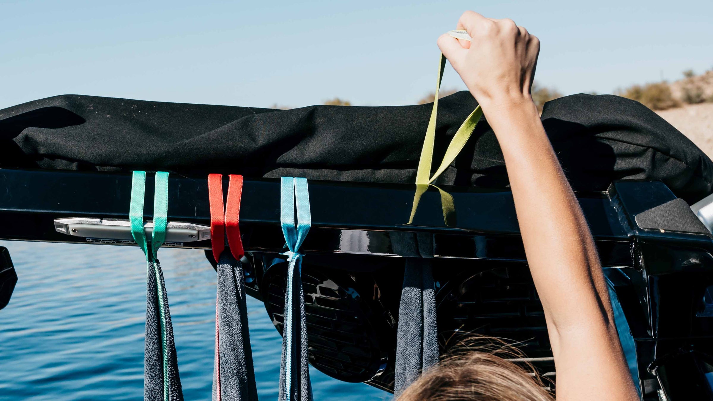 Use the integrated strap to hang TUKO from your boat’s tower, bimini or handrail to help it dry out. No more balled up wet towels laying around.