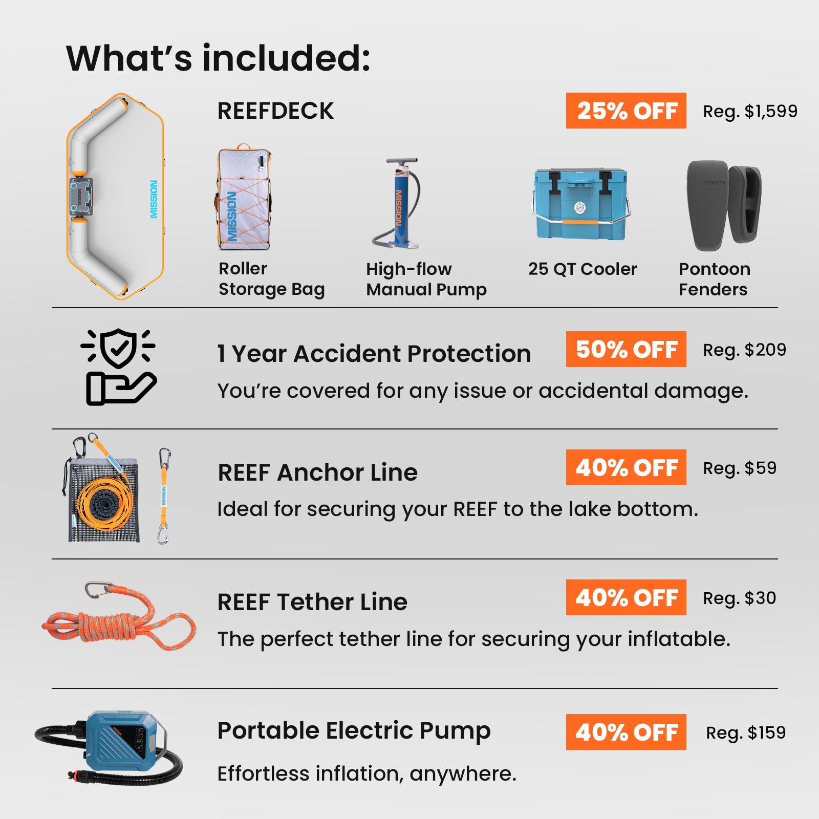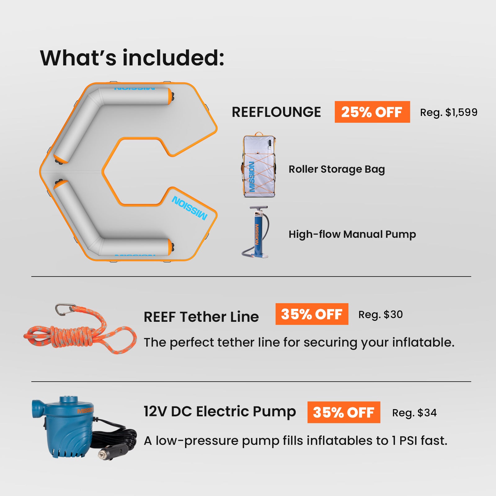 No more wrestling with wet, heavy mats. REEF inflates in minutes and deflates just as fast, so you spend less time setting up and more time having fun.